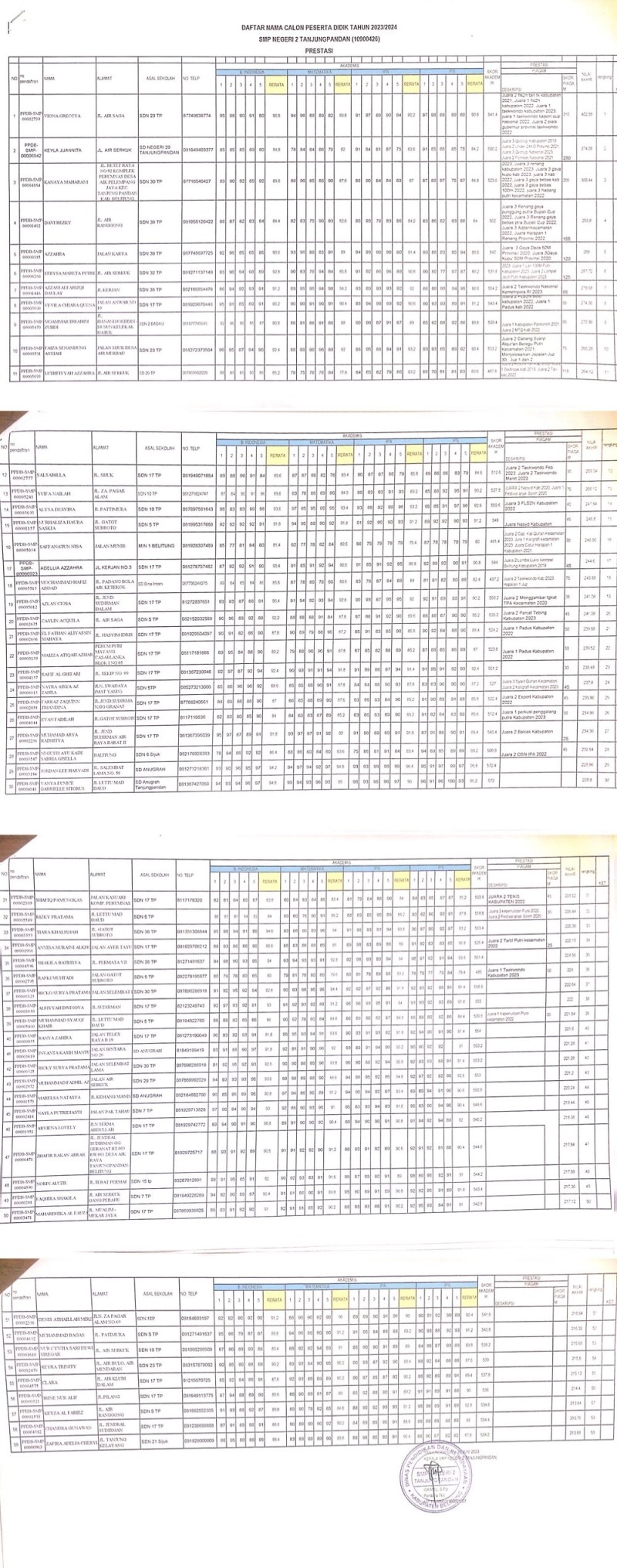 Diberitahukan kepada calon peserta didik baru yang sudah lolos untuk melakukan pengambilan nomor urut daftar ulang di halaman SMP Negeri 2 Tanjungpandan